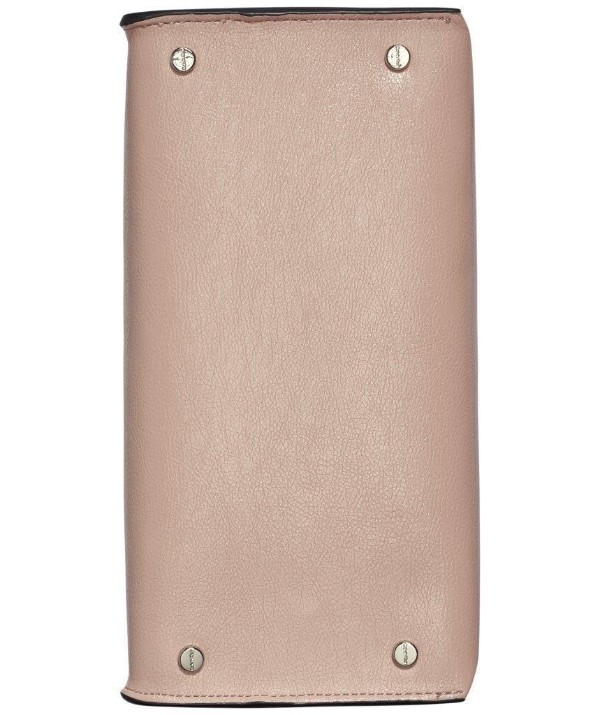 Сумка с двойными ручками для переноски в руке. Также есть съемный текстильный широкий ремешок для переноски сумки на плече или через плечо. Ремешок крепится к сумке с помощью карабинов.