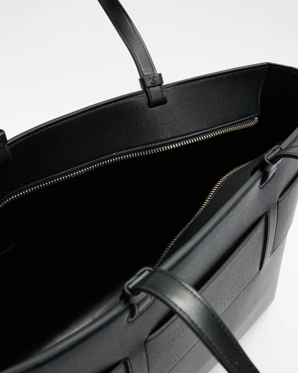 Вместительная сумка из экокожи с двумя ручками для ношения в руке или на плече.