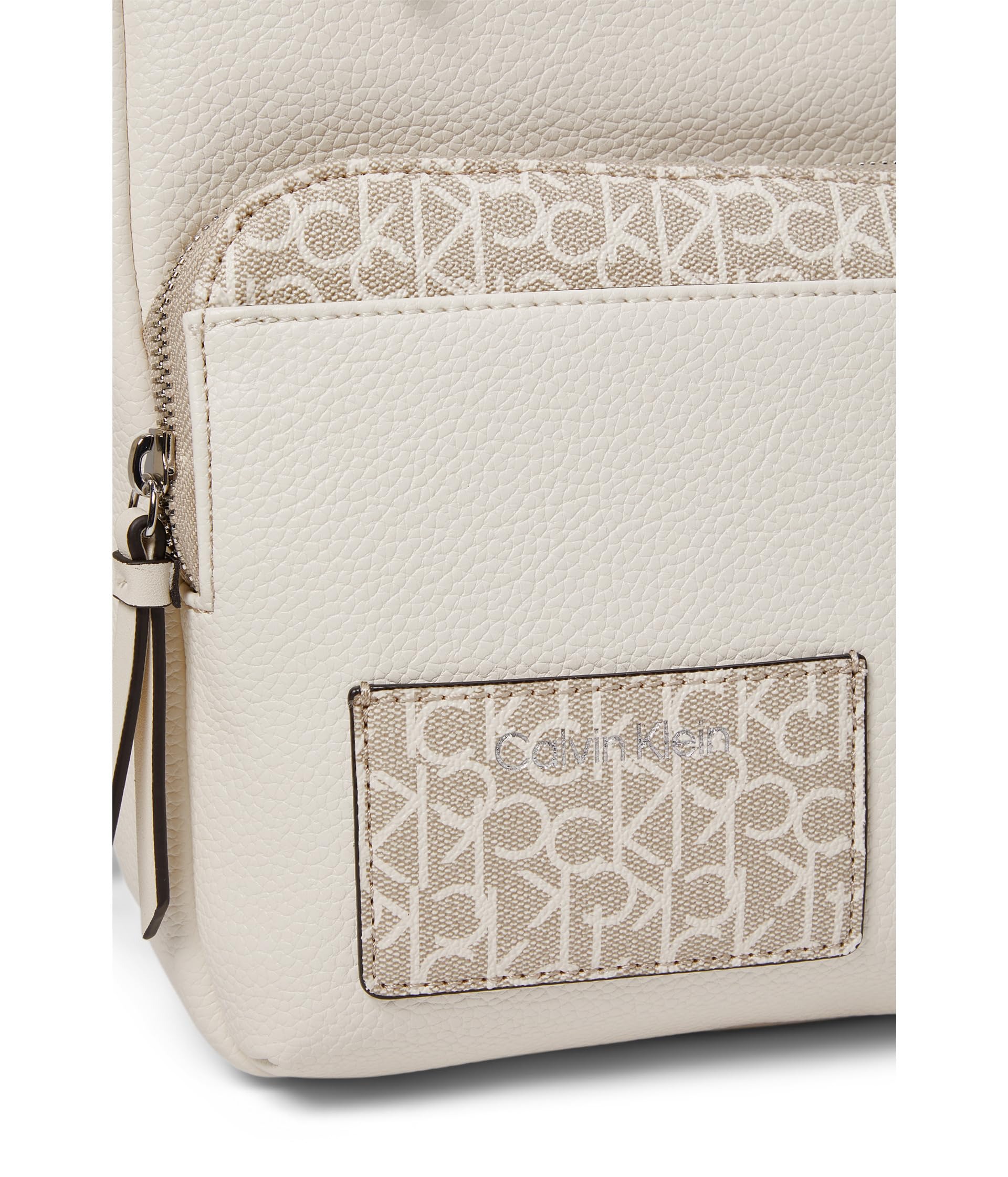 Зовнішня кишеня на блискавці та слот для банківських карт контрастного кольору та з монограмою бренду.