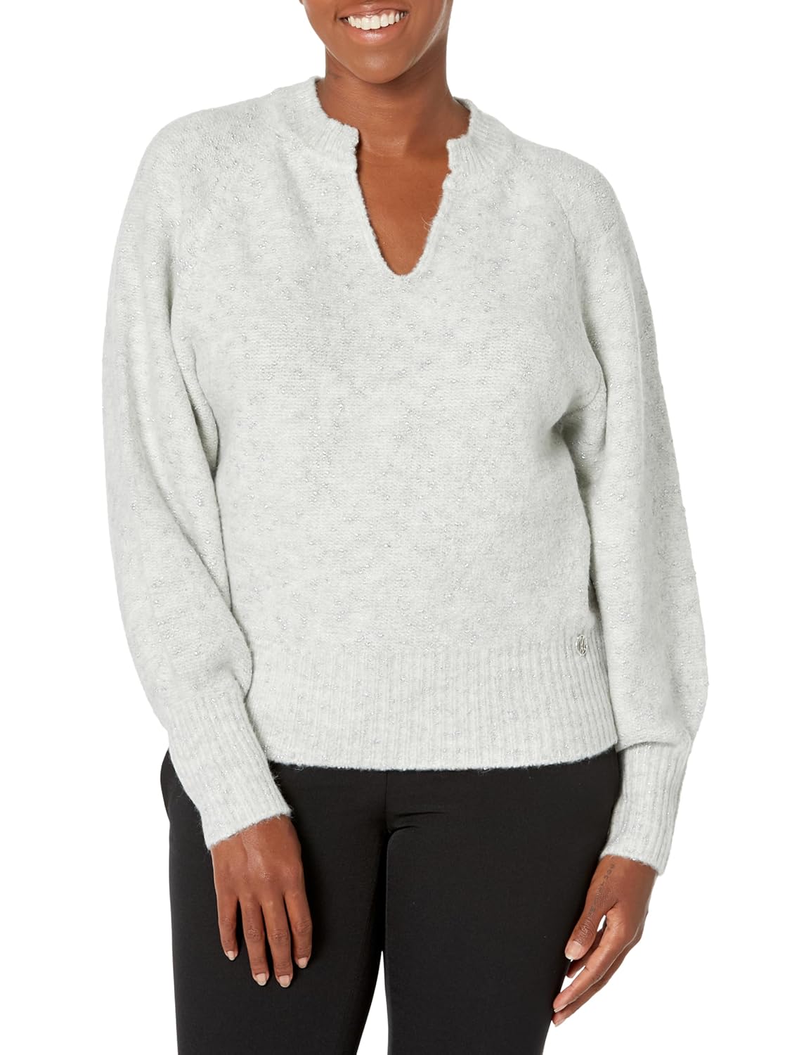 V-подібний виріз, манжети та низ у рубчик.