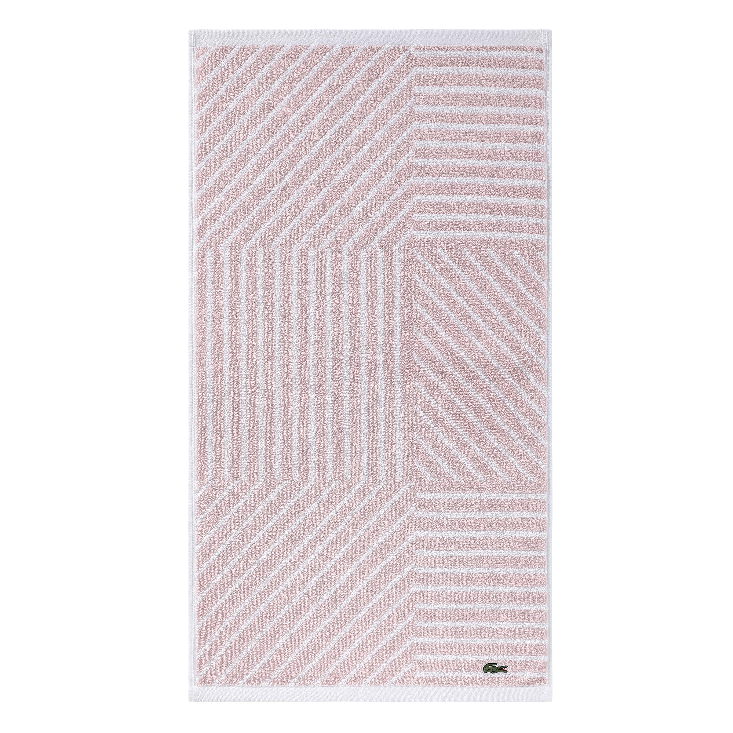СУЧАСНИЙ ДВОСТОРІННИЙ ДИЗАЙН: Геометричний візерунок привнесе чарівність у вашу ванну кімнату з банним рушником Guethary від Lacoste, що має грайливий малюнок, який перетікає в інвертовану колірну схему.