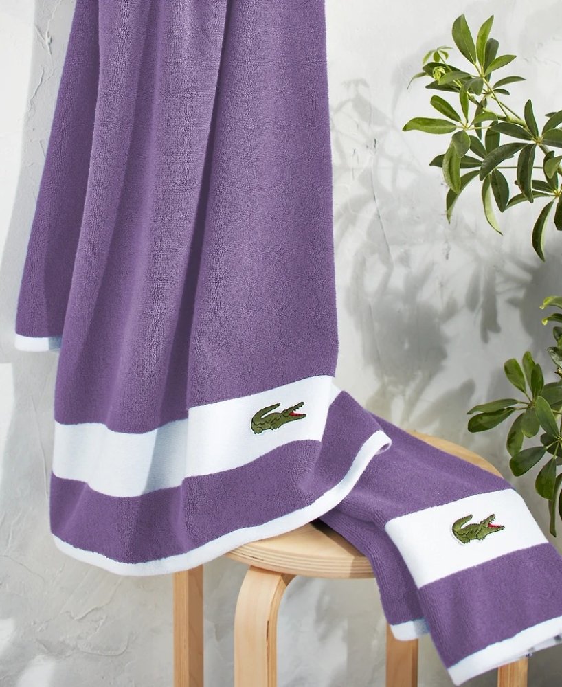 Цей комплект рушників преміум-класу від Lacoste з контрастними смужками та культовим логотипом-крокодилом Lacoste стане стильним штрихом для будь-якої ванної кімнати.