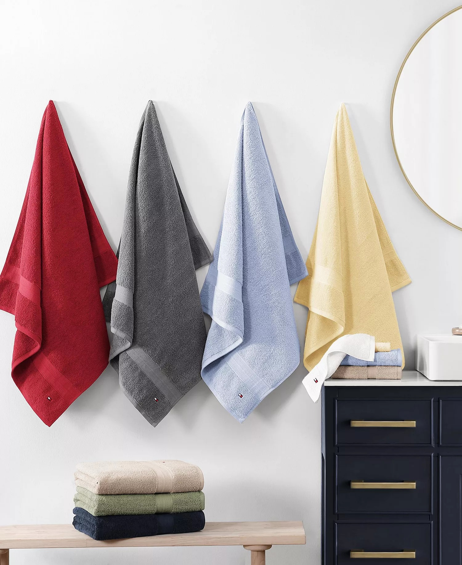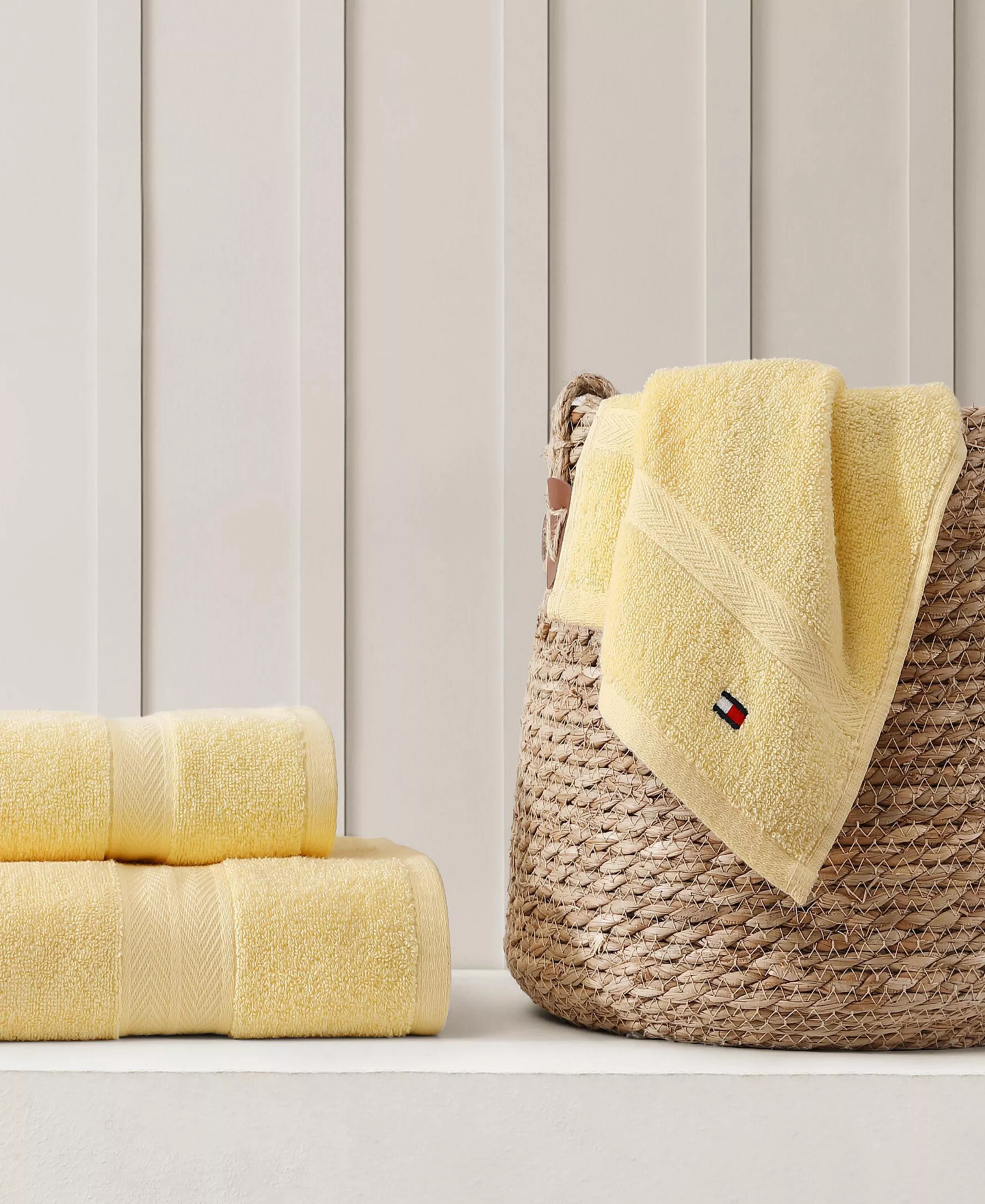 Это классическое банное полотенце от Tommy Hilfiger легко дополнит любую ванную комнату.