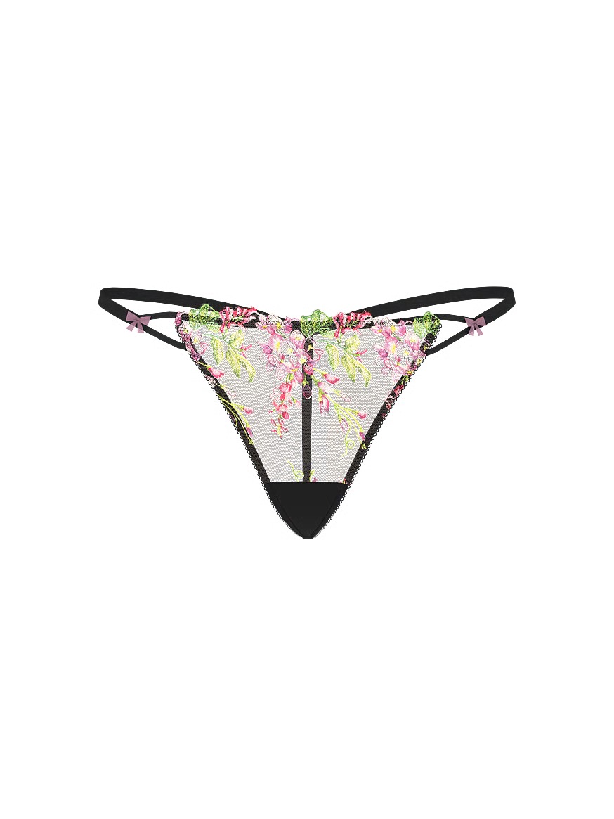 Елегантні трусики стрінги Victoria's Secret виконані з легкої напівпрозорої сітки з вишуканою вишивкою, що створює витончений та жіночний образ. Ніжні квіткові мотиви спереду надають моделі особливого шарму.