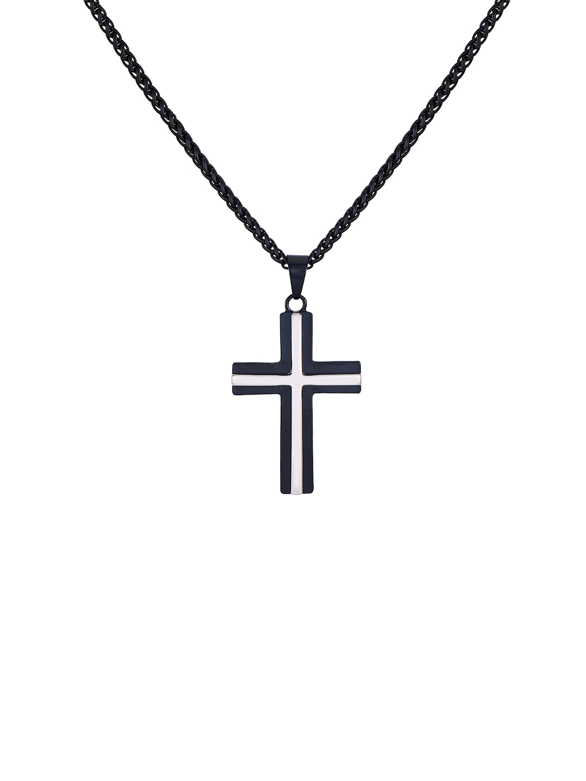 Ланцюжок із хрестом із чорного металу із сріблястою вставкою.