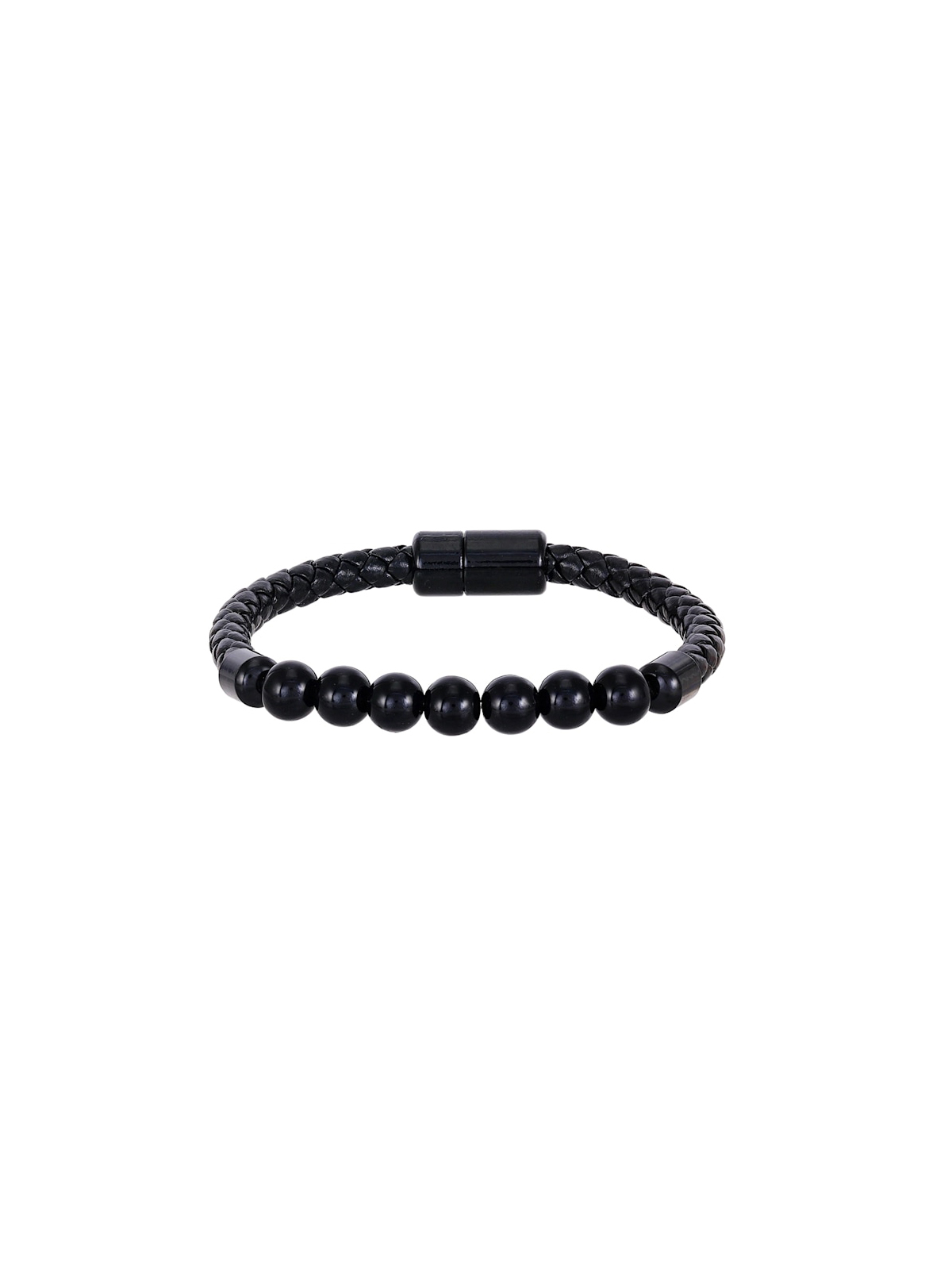 Плетений браслет з чорними намистинами.