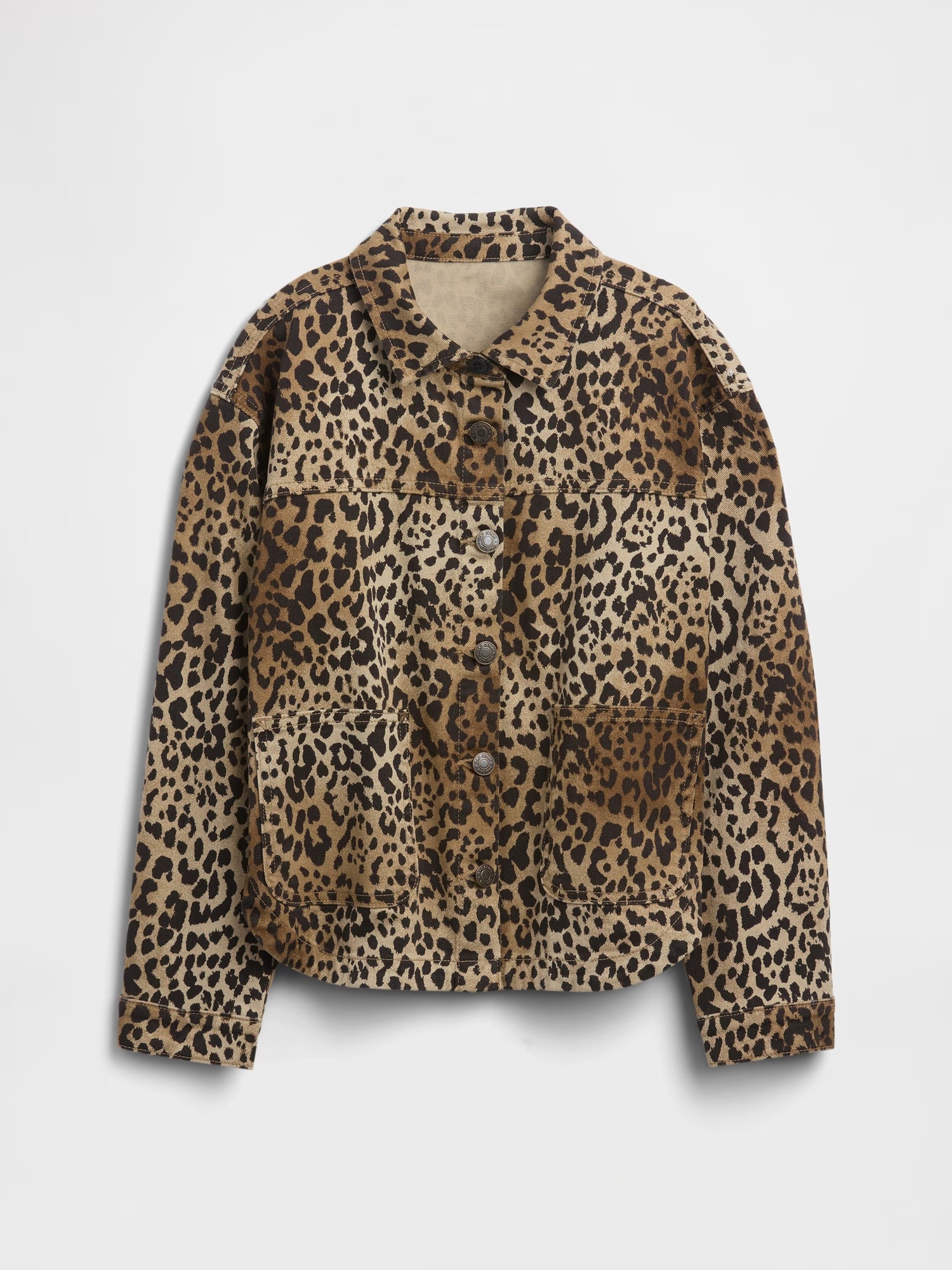 Дуже стильна куртка сорочкового крою із еластичного деніму з леопардовим принтом.