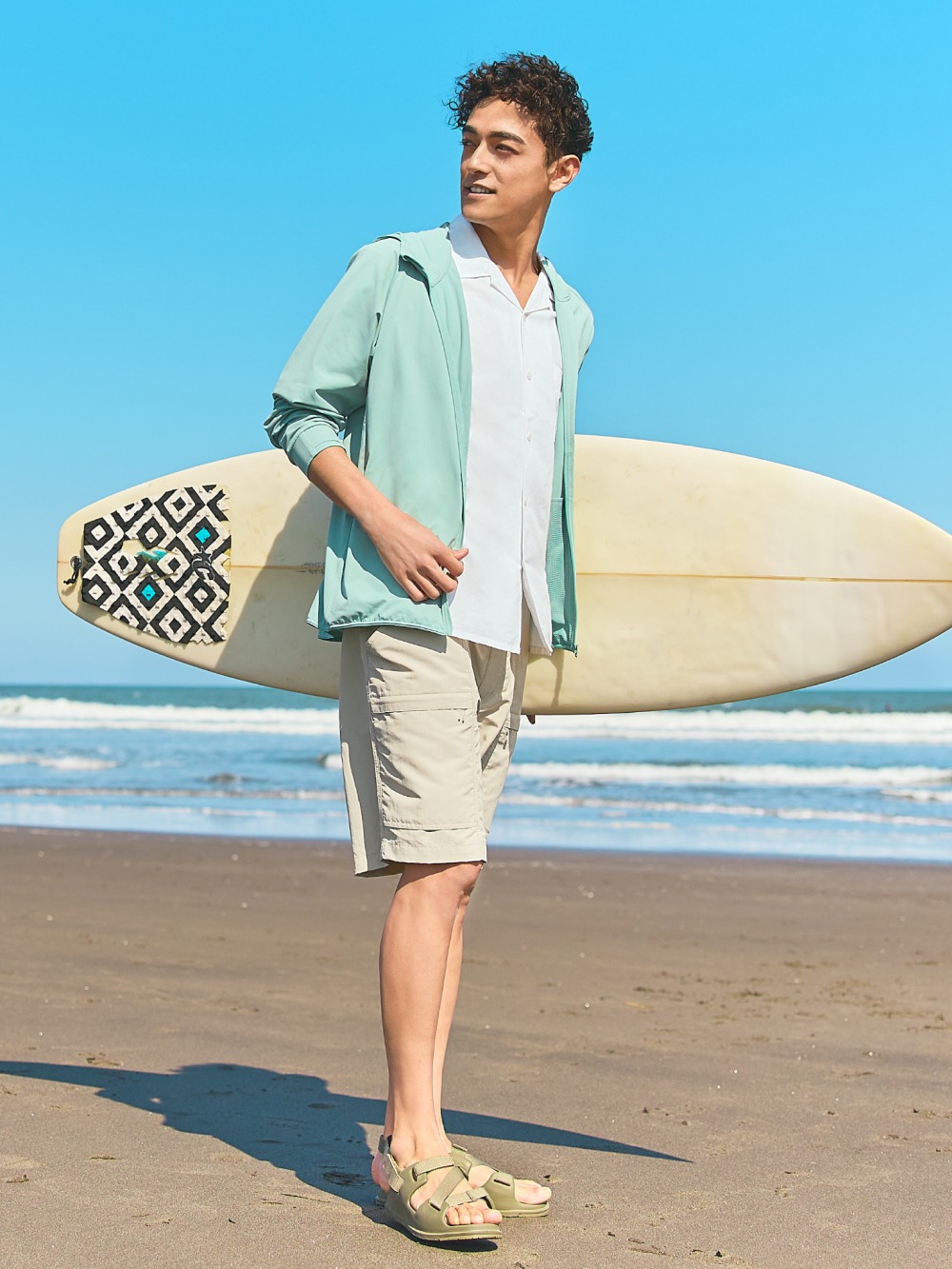 Спеціальний сітчастий матеріал куртки забезпечує чудову повітропроникність та додатково захищає від ультрафіолету. Технологія DRY EX ефективно вбирає вологу, підтримуючи відчуття свіжості протягом усього дня.