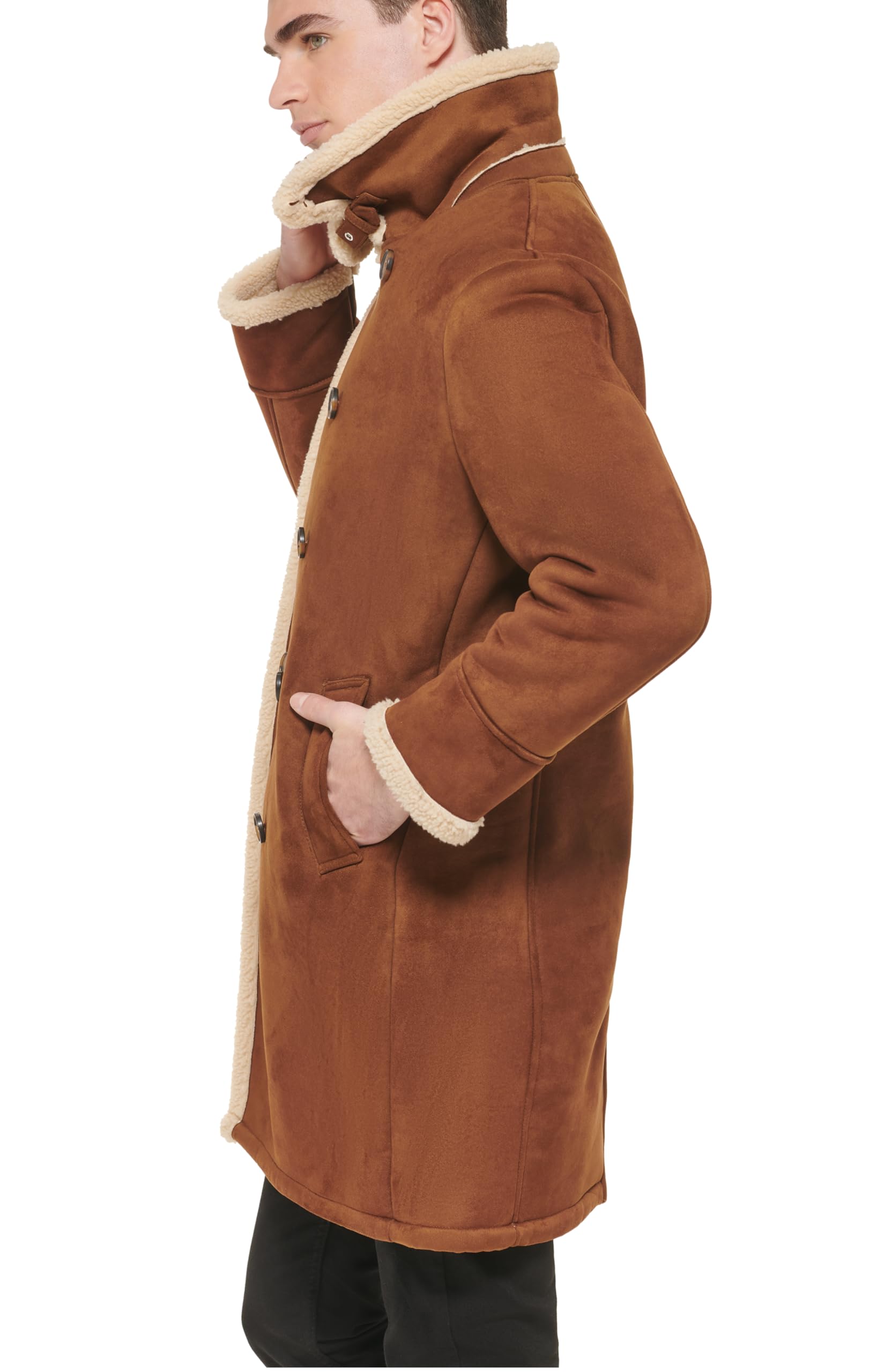 Стильное мужское пальто GUESS, выполненное из экозамши с подкладкой из шерпы.