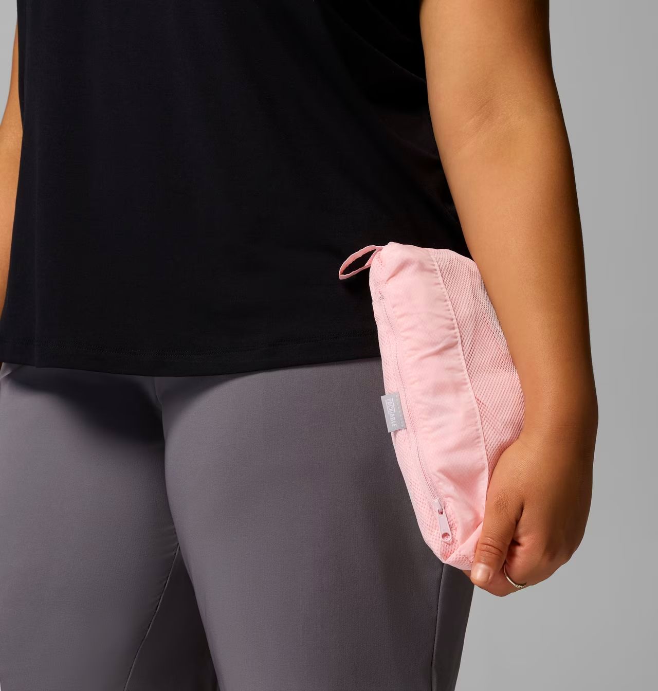 Вся куртка складывается в один из карманов для рук: выверните карман наизнанку, положите куртку внутрь, застегните молнию и отправляйтесь в путь.