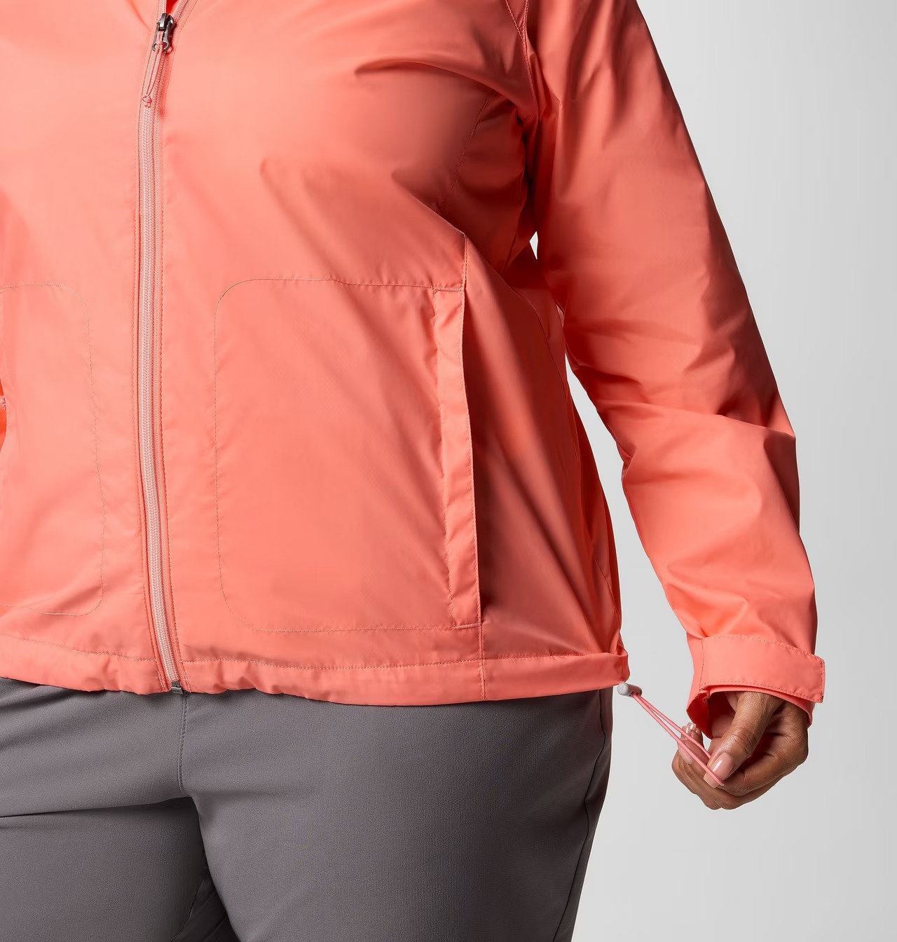 Низ куртки с утягивающей резинкой.