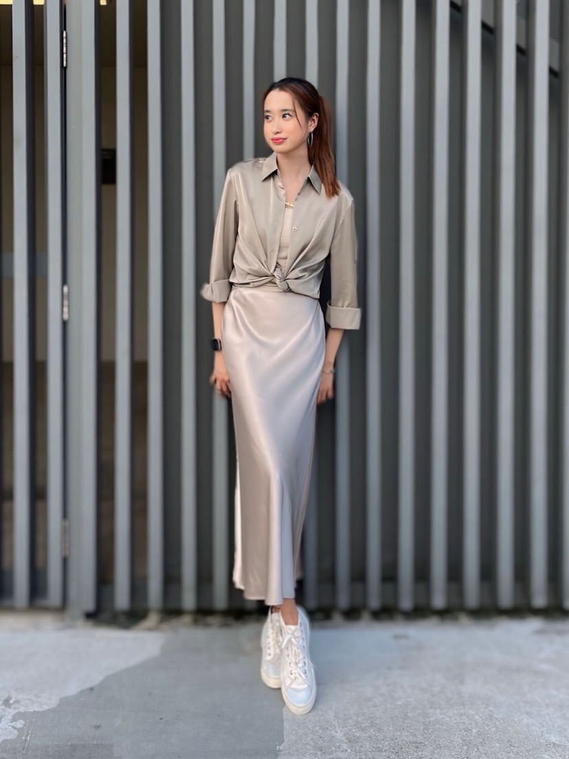 Женская атласная юбка UNIQLO 1159855528 (Бежевый M)